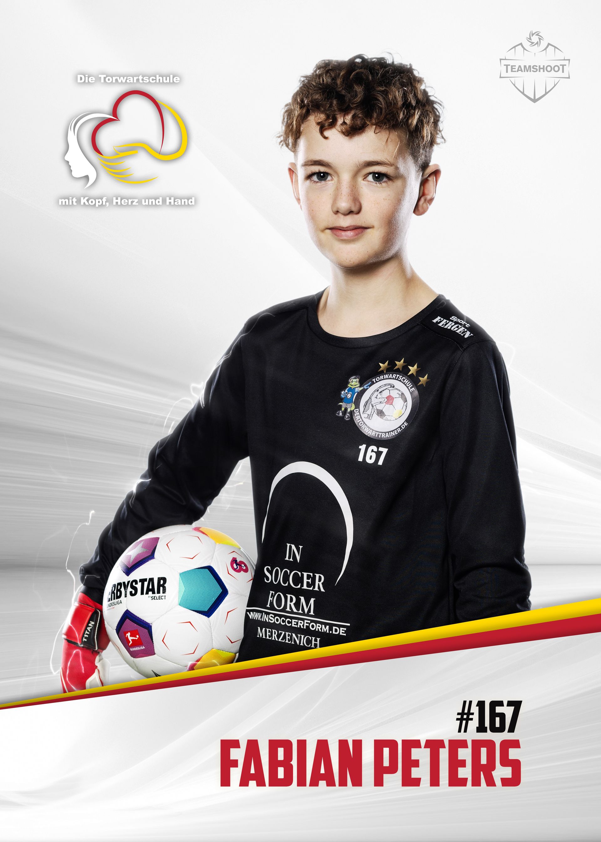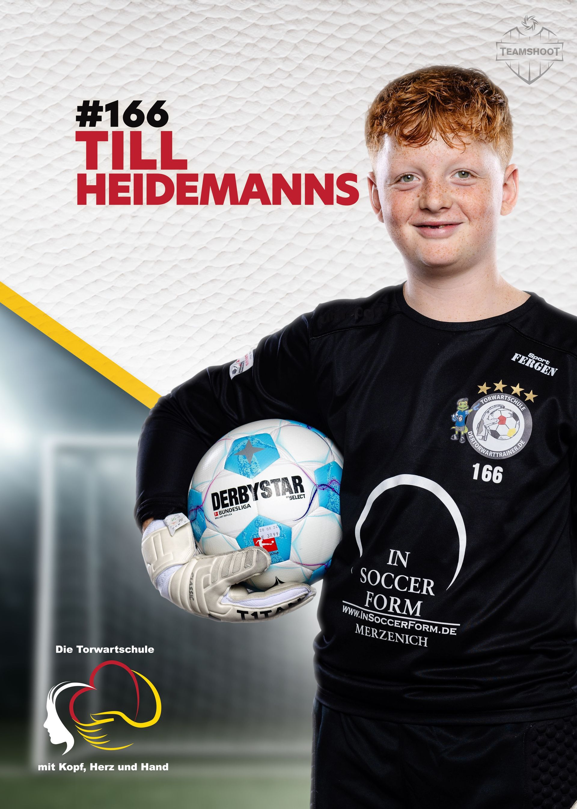Nicht nur die kontinuierliche Teilnahme an den Trainingseinheiten, sondern auch durch die Teilnahme an diversen Einzeltrainingseinheiten, strotzt die #168 der Torwartschule nur so von Selbstvertrauen. Der 2011er Torhüter des BV Wevelinghoven zeichnet sich durch seine ruhige, respektvolle und disziplinierte Art, besonders im Umgang mit den Trainern und seinen Trainingskollegen, aus.