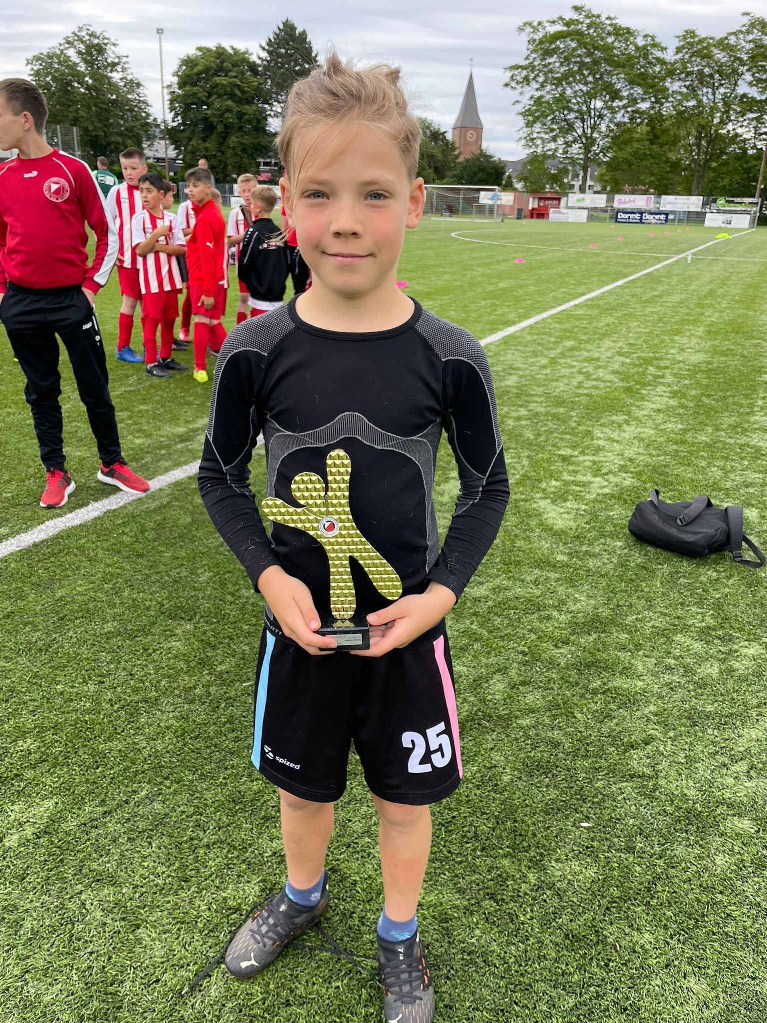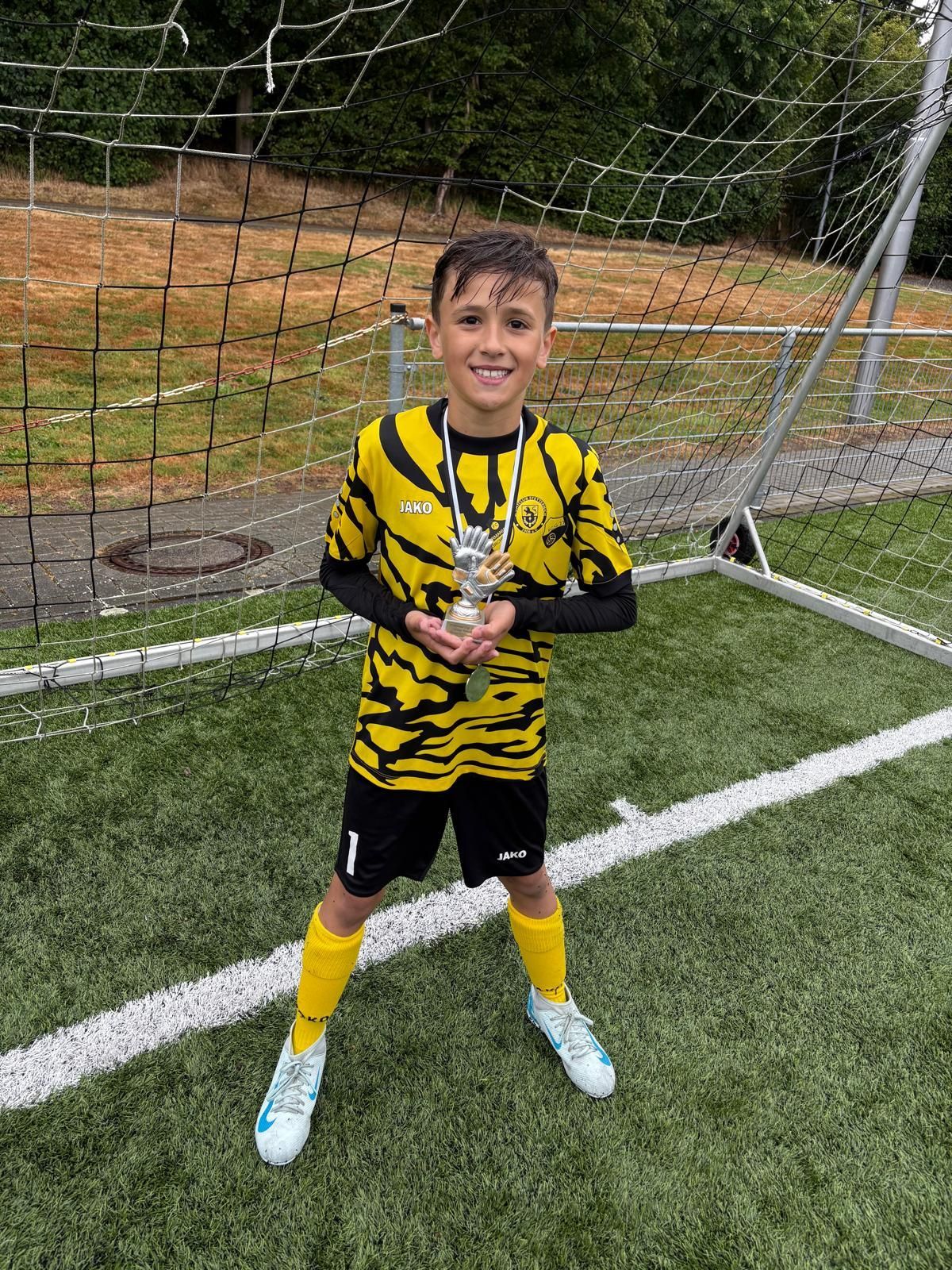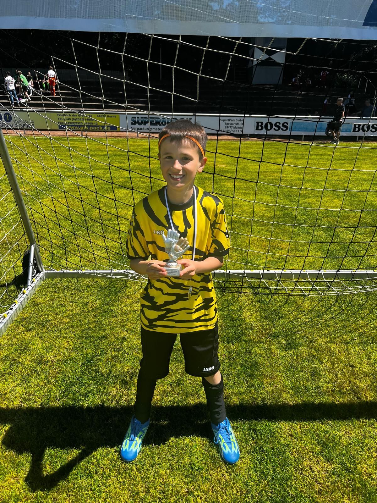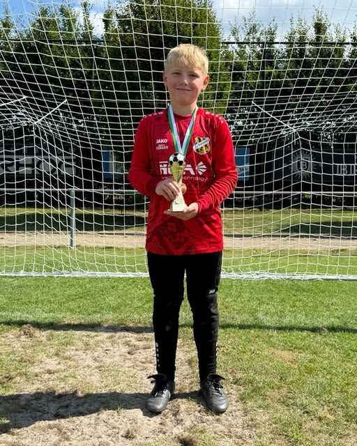 Beim diesjährigen Hehlrather Sommercup überzeugte Lennard Lörgen (Jahrgang 2014) mit einer starken Leistung im Tor. Die #210 der Torwartschule wurde am Ende der Turniers, mit dem Pokal für den besten Torhüter ausgezeichnet. Lennard beeindruckte nicht nur mit seiner Reaktionsschnelligkeit und Spielübersicht, sondern auch durch seine kontinuierliche Entwicklung, die sich auch im Einzeltraining während der Osterferien bemerkbar machte. Seine hohe Trainingsbeteiligung und sein Ehrgeiz zahlen sich aus – eine großartige Leistung, die Lust auf mehr macht!
