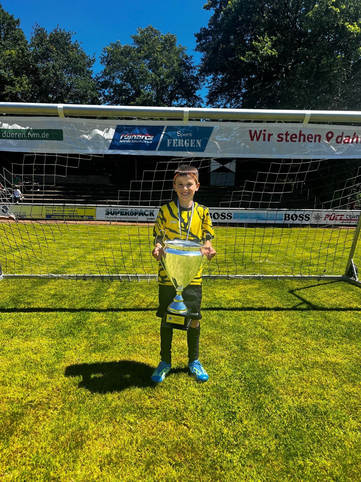Der Torwart des 2015ner Jahrgangs vom SC Merzenich belegte auf dem Gebäudereinigung Boddenberg Cup in Birkesdorf mit seiner Mannschaft einen hervorragenden vierten Platz. Durch seine hervorragenden Paraden, dass sehr gute Stellungsspiel und einem gehaltenen Elfmeter im kleinen Finale, konnte Magnus alle überzeugen und voller Stolz mit dem Pokal „Bester Torwart des Turniers“ nach Hause fahren.